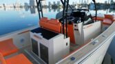 There is a round seat in the bow and a generous sun bed in the back of the cockpit. The “wet-bar” is equipped with a sink and has room for no less than two cowl cabinets and even a stove. At the rear of the console is the entrance to the wet-bar with standing height, electric toilet and sink. Forward is the possibility for double bed.